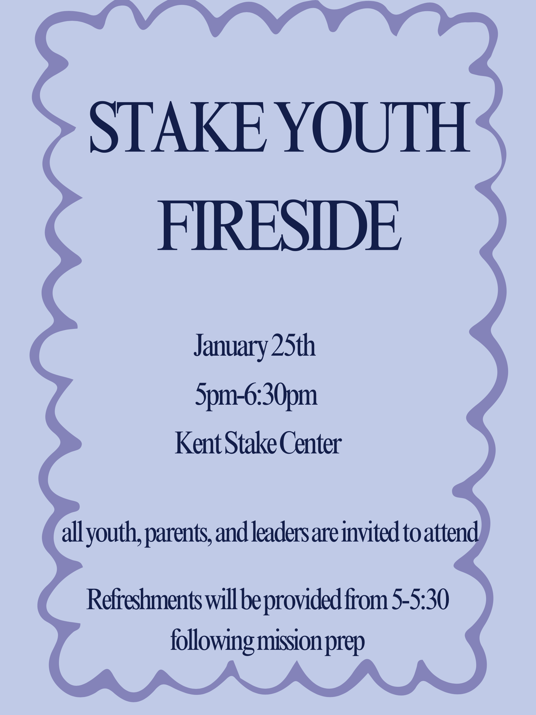 We are holding a Stake Youth Fireside on February 1st after Mission Prep to kick off the 2026 Youth Theme!